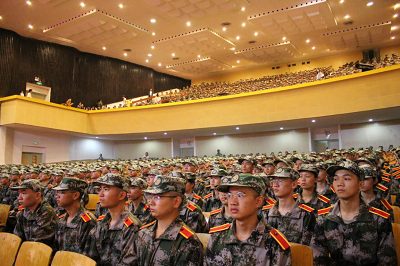 在开学典礼上,余蓉晖为新生解读学校学籍管理规定和课程考核管理,并对新一届潇湘学子提出期待和要求,希望新生们能严格遵守各项规章制度,做一名遵纪守法的合格大学生。随后,她对新生提出“一看二问三跑、两泡、两吃”的学习要求。“余院长的“两泡,两吃”不断地在耳边激励着我为未来、为梦想,奋勇拼搏,为潇湘增光添彩。”我院新生环艺一班邹宇轩在军训感言中写道。