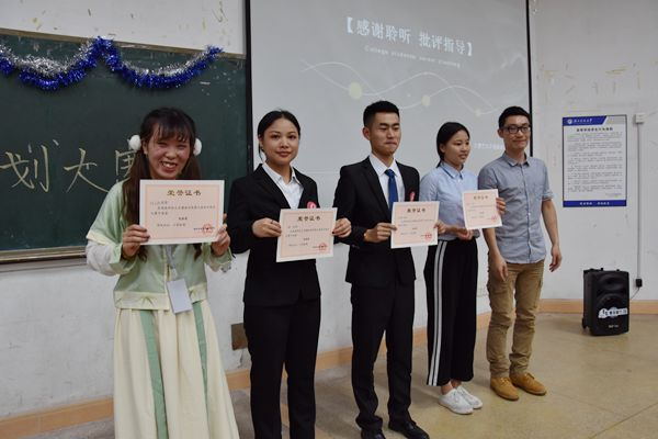 经过激烈的角逐,最终来自17级环境设计一班的李运龙以90.57分的好成绩获得了本次职业生涯规划大赛的一等奖;黎嘉琪和王玉萍荣获二等奖;张悦、廖建奇、殷泽毅荣获三等奖;蒋慧芳、冯凯航、许**和卢柔荣获优胜奖。